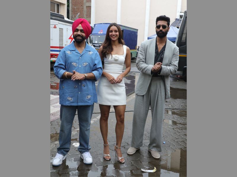 Vicky Kaushal, Ammy Virk And Triptii Dimri Spotted Promoting Their Film Bad Newz At Mehboob Studios